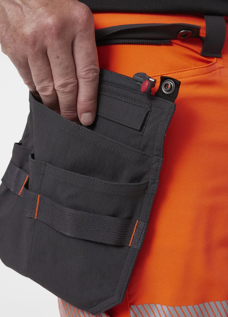 ICU-huomiorakennustyöshortsit (luokka 1) kevyttä ja kestävää neljään suuntaan joustavaa kangasta. Vetoketjulliset, irrotettavat Cordura®-riipputaskut, joissa kaksinkertainen pohja ja kestävät nailontyökalulenkit. Voidaan hyvin käyttää yhdessä muiden ICU-sarjan huomiotyövaatteiden kanssa. OEKO-TEX-hyväksytty materiaali. EN ISO 20471:2013: 1.