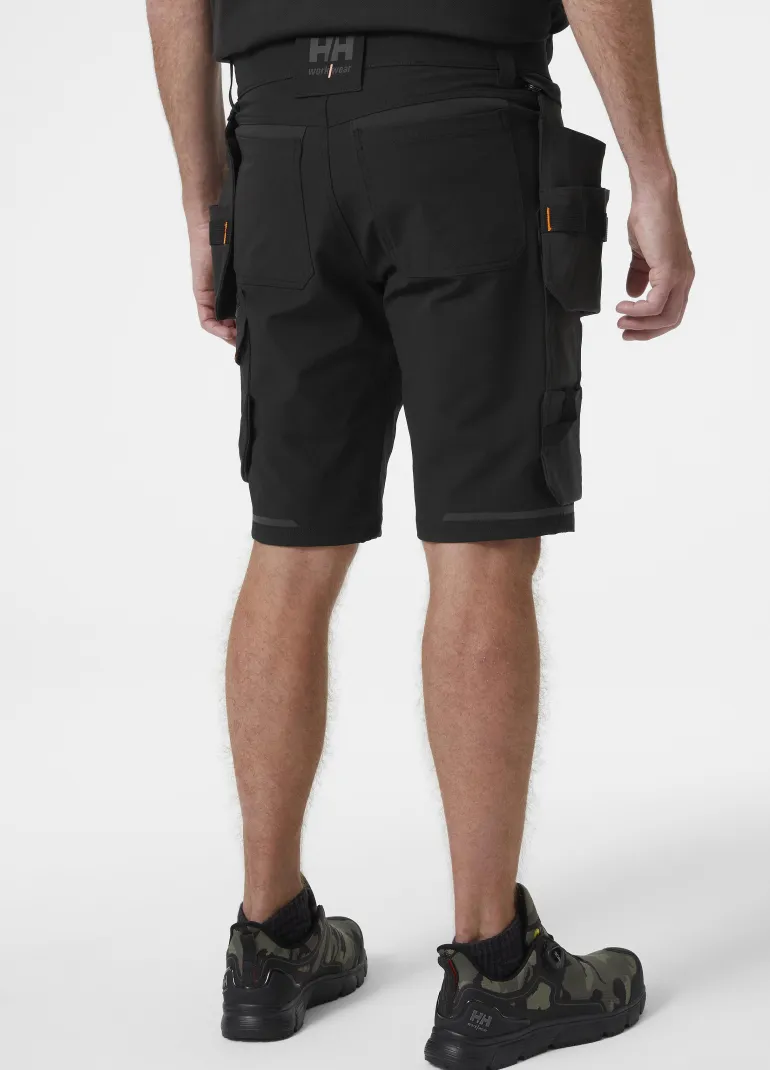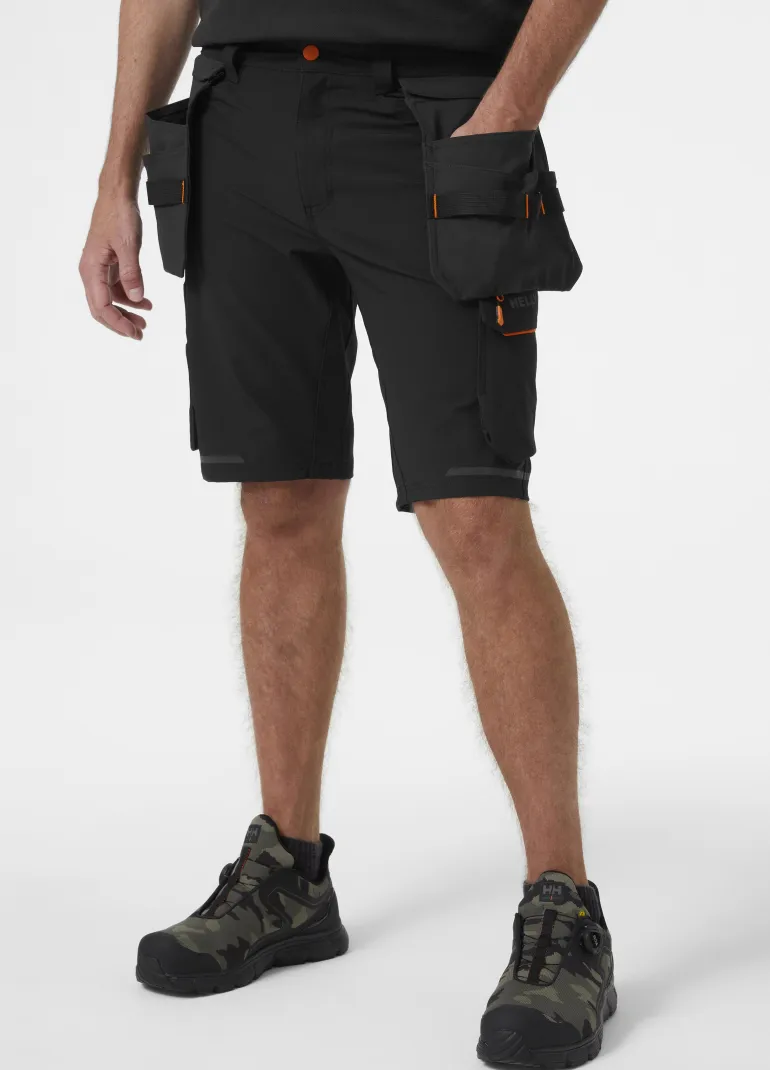 Kensington-rakennustyöshortsit kevyttä ja kestävää neljään suuntaan joustavaa kangasta. Vetoketjulliset, irrotettavat Cordura®-riipputaskut, joissa kaksinkertainen pohja ja kestävät nailontyökalulenkit. Heijastavat yksityiskohdat.