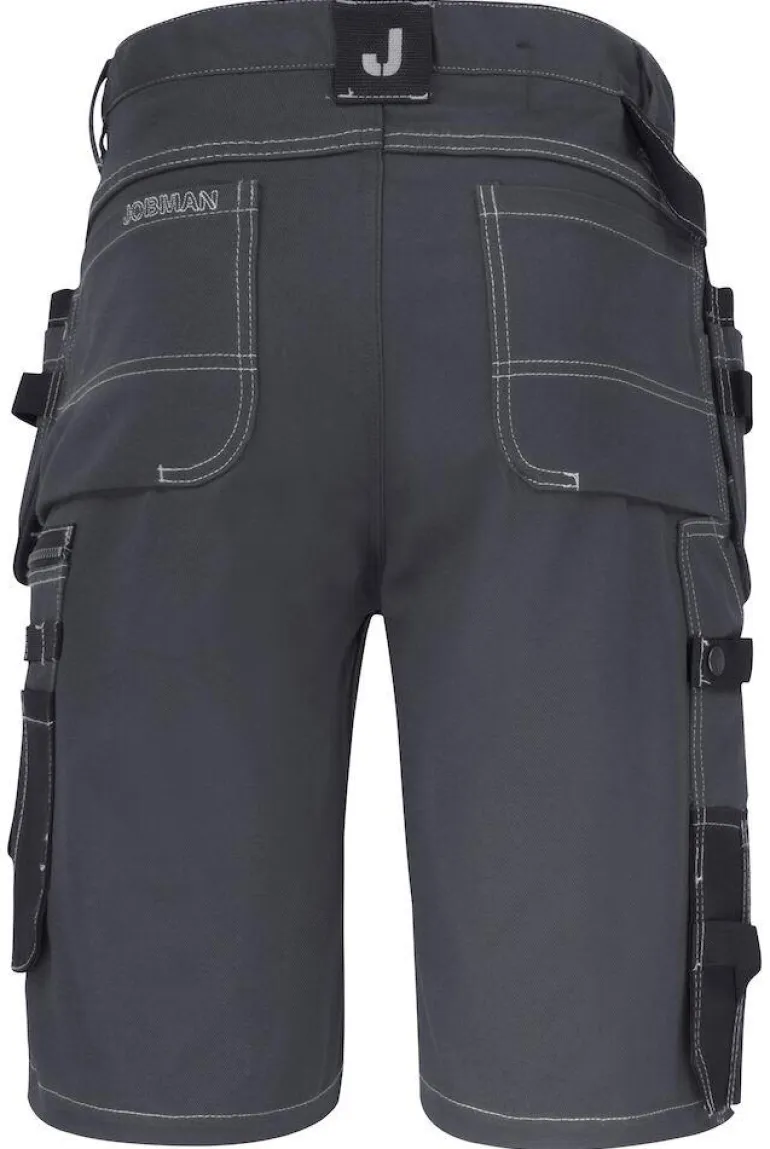 Jobman 2733 on työshortsit 100-prosenttista puuvillaa. Shortseissa on tilavat riipputaskut, vahvistetut takataskut, tuumamittatasku puukkopidikkeellä ja vetoketjullinen reisitasku, jossa puhelin-, henkilökortti- ja lisätasku.