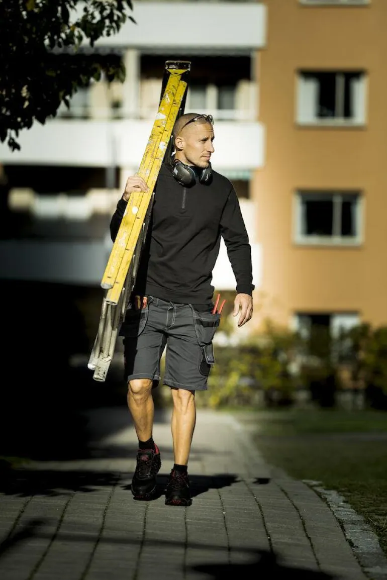 Työshortsit 100-prosenttista puuvillaa. Shortseissa on tilavat riipputaskut, vahvistetut takataskut, tuumamittatasku puukkopidikkeellä ja vetoketjullinen reisitasku, jossa puhelin-, henkilökortti- ja lisätasku.