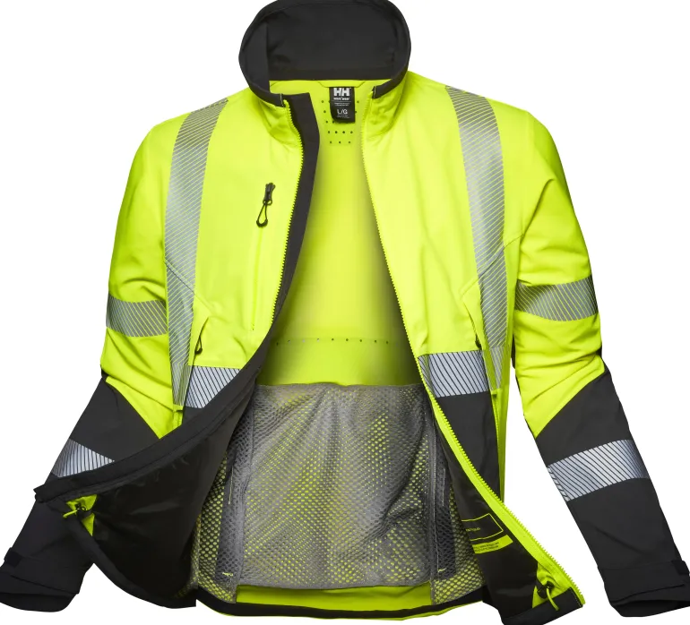 High-tech -huomiotyötakki kevyestä neljään suuntaan joustavasta stretch-kankaasta. Huomioluokan 2 työvaate.