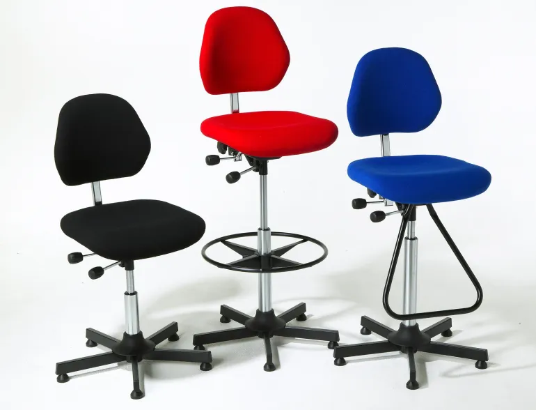 Mukava ja laadukas tuoli, jossa on kestävä, musta tai sininen kangasverhoilu. Portaaton istuinkulman kaltevuuden säätö. Selkänojan syvyyttä ja korkeutta on helppo säätää. Korkea malli, jossa portaaton korkeussäätö 650-900 mm. Mukana liukujalat. Pyörät ja säädettävät käsinojat ovat saatavana lisävarusteina.