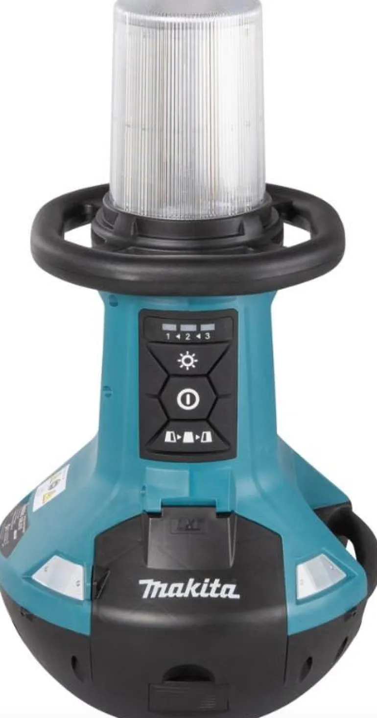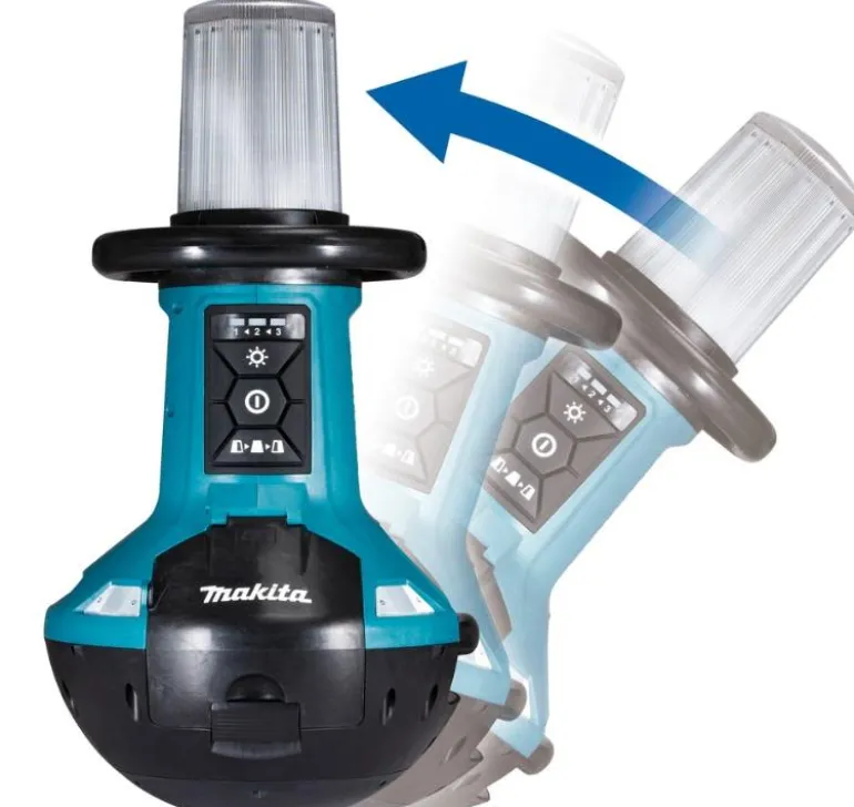 Makitan 14,4/18 V työmaavalaisin säädettävällä valaistusalueella (360° valaiseva, 180° valaiseva vasemmalle ja 180° valaiseva oikealle). Valaisin muistaa edellisen käytetyn tehoasetuksen, jolloin ei tarvitse joka kerta säätää kirkkautta uusiksi. Valaisin on varustettu vaihtovirtapistorasialla, jonka ansiosta jopa 8 yksikköä voidaan kytkeä toisiinsa. Runko ilman akkua ja laturia.