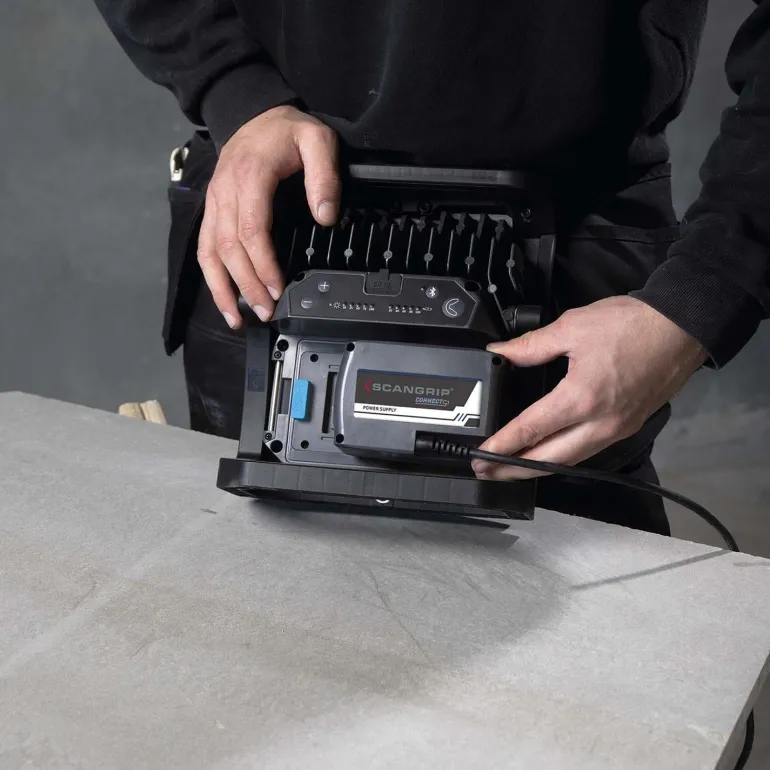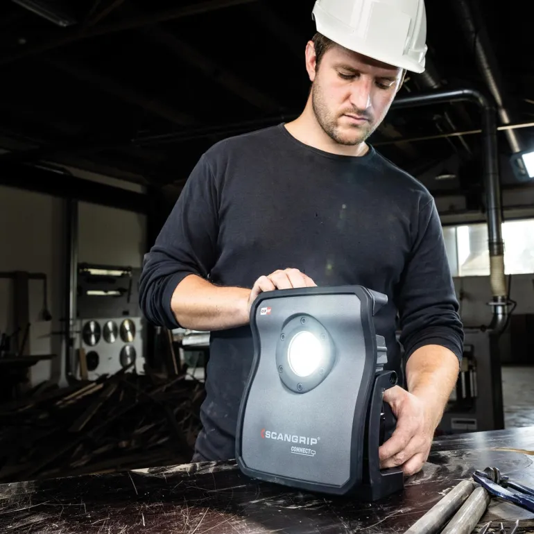 Työvalaisin Bluetoothilla ja viimeisimmällä COB LED-teknologialla, joka valaisee kirkkaasti 4 000 luumenin valovirralla. Varustettu myös sisäänrakennetulla 5-portaisella himmentimellä. Yhteensopiva kaikkien suurempien valmistajien 18V/20 V-akkujen kanssa Scangripin Connector-adapterin avulla (ei sisälly toimitukseen). Lisäksi lisätarvikkeena löytyvä POWER SUPPLY CONNECT mahdollistaa valaisimen kytkemisen suoraan verkkovirtaan. Valaisimessa on myös akun tilan ja valokirkkauden ilmaisin, sisäänrakennettu varavirtalähde (Powerbank) mobiililaitteiden latausta varten sekä vara-akkujärjestelmä, joka varmistaa 2,5 tunnin toiminnan 400 luumenin valovirralla pääakun tyhjentyessä. Bluetooth-ohjaus mobiilisovelluksen avulla mahdollistaa jopa neljän valaisimen ohjauksen mobiililaitteella. 5-portaisella himmennystoiminnolla voit mukauttaa valaisimen tehon käyttötilanteen mukaan.