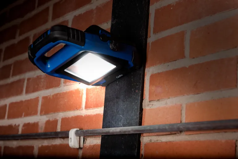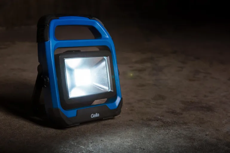 Gelia TARGET T20SB on kestävä ja kompakti LED-työvalaisin. Akkukäyttöinen LED-valaisin voidaan ladata 230 V:n pistorasiasta tai auton 12 V:n pistorasiasta mukana toimitettavalla muuntajalla. Valaisimen alapuolella on kaksi vahvaa magneettikiinnikettä, joiden ansiosta valaisin voidaan kiinnittää tukevasti metalliesineisiin. Kumipintaisen kahvan ansiosta työvalosta saa helpon otteen ja sitä on helppo kantaa. LED-valaisimessa on kaksi valotilaa: 100 % ja 50 %. Työvalaisimessa on sekä kääntyvä jalusta että kääntyvä kotelo, mikä helpottaa valon suuntaamista. Työvalaisimen USB-liitäntä SV DC 1A mahdollistaa muiden tuotteiden lataamisen valaisimenkautta. Latausaika 3,5/4 tuntia. Käyttöaika 2,5/5 tuntia. Suojausluokka IP44.