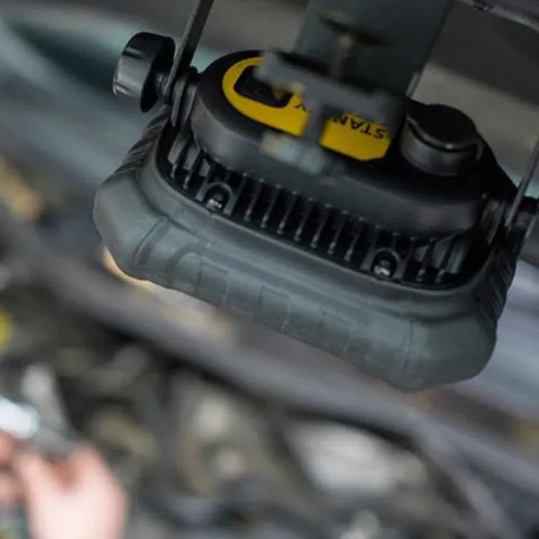 Työvalaisin, jossa on kaksi kirkkausasetusta: matala (500 luumenia) ja korkea (1000 luumenia). COB LED -valonlähde: Tarjoaa kompaktimman ja tiiviimmän valon. Voidaan käyttää johdon kanssa tai ilman (johto 5m) – runsaasti joustavuutta. Akun kesto 4-8 tuntia riippuen käytetystä toimintatilasta
