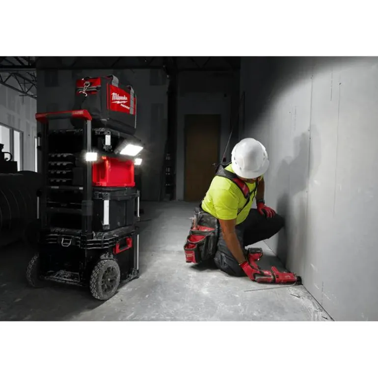 Milwaukee M18 POALC-0 PACKOUT on 18 V tilavalaisin kolmella itsenäisesti säädettävällä päällä, jotka tuottavat 3000 lm TRUVIEW-valoa. Valaisimessa on yhteensä 9 erilaista tehoasetusta mukautettua kirkkautta ja pidempää käyttöaikaa varten. POALC-0 PACKOUT saa virtansa joko M18 REDLITHIUM-akuista tai 2,5 m virtakaapelista. Integroitu M18-laturi mahdollistaa akun lataamisen valaistuksen ollessa päällä. Työvalaisin on varustettu 2,1 A USB-portilla mobiililaitteiden lataamista varten. PACKOUT-säilytysjärjestelmän kanssa yhteensopiva. TRUEVIEW -teknologia antaa mukavan värilämpötilan, jonka avulla työskentelet tehokkaasti koko päivän ajan.