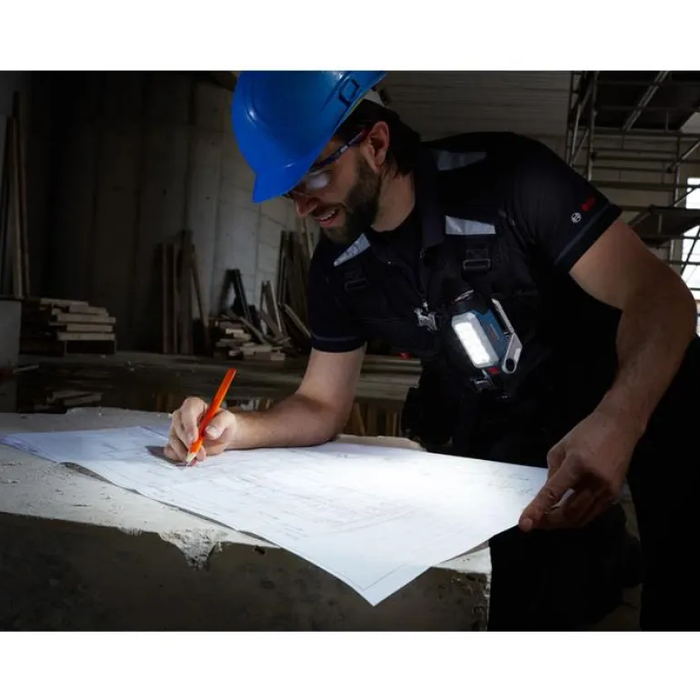 Erittäin tehokkaasti valaiseva työlamppu 10 innovatiivisen Power-LED-valon ansiosta. Työvalaisin toimii Bosch 10,8 V -paristoilla.