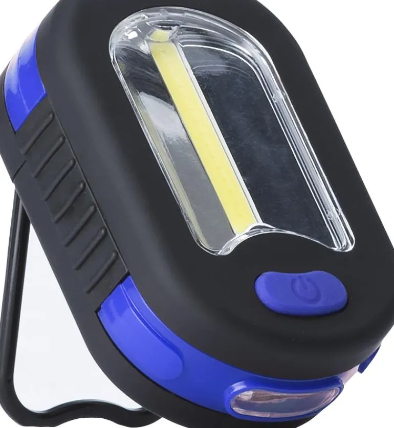 Iskunkestävä työvalo 3 W, joka voidaan ripustaa tai kiinnittää käyttäen lampun takaosassa olevaa magneettia. Kaksi valotehoa (100 % ja 50 %) ja valovirta 180 luumenia.