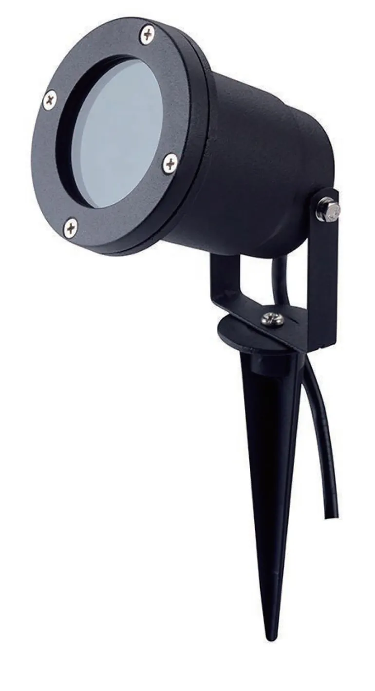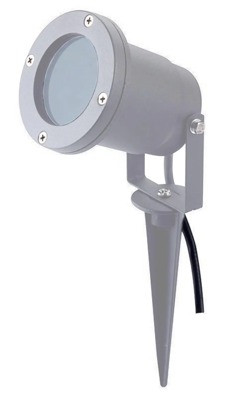 Puutarhavalaisin (maavalaisin) alumiinista GU10-kannalla ilman valonlähdettä. Valaisin on säädettävissä, kohdennettu valo eteenpäin. Sisältää 2 m johdon. Käyttöalueina pihat ja puutarhat esim. pensaiden tai kukkapenkkien valaisemiseen. Alumiinikotelo, IP54-luokitus. Sopii sekä yksityiseen että julkiseen käyttöön. Maapiikki, joka soveltuu useille eri alustoille.