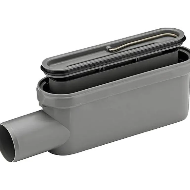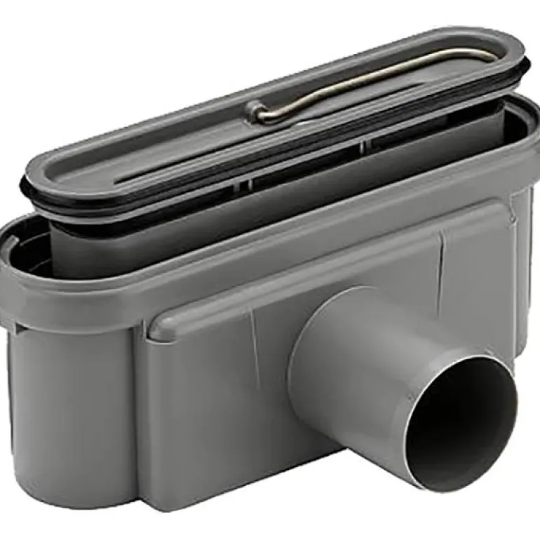 Ulostulokotelo Ø 50 mm päätyulostulolla ja vesilukolla. Ulostulokoteloa voidaan kääntää 180 ° siten, että ulostulo voidaan suunnata joko oikealle tai vasemmalle