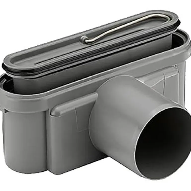 Poistokotelo Ø 75 mm sivu-ulostulolla ja vesilukolla. Ulostulokotelo voidaan asentaa puurunkoihin, ja sitä tulee käyttää yhdessä Unidrainin kiinnikkeen kanssa. Ulostulokoteloa voidaan kääntää 180 ° siten, että ulostuloaukkoa voidaan ohjata joko eteen- tai taaksepäin