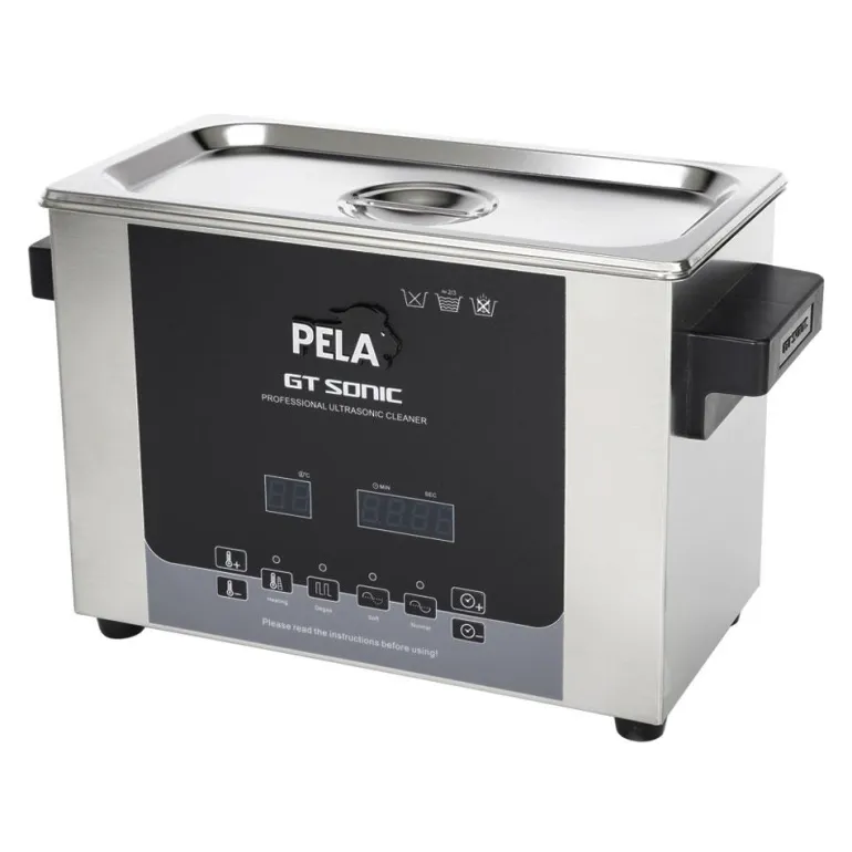 Pela 505267 on ultraäänipesuri digitaalisella termostaatilla ja ajastimella, nesteenpoistolla ja muistitoiminnolla. Erinomainen pienten komponenttien ja osien, kuten venttiilien ja suuttimien jne. puhdistukseen. Säiliön alla on elementti, joka luo korkean taajuuden ja aiheuttaa tärinää. Miljoonat pienet terävät kuplat puhkeavat puhdistettavaa kappaletta vasten ja ulottuvat pieniin reikiin, saumoihin ja kierteisiin, joihin ei yleensä pääse käsiksi muilla pesumenetelmillä. Täytetään pesuaineeseen sekoitetulla vedellä, joka kuumennetaan noin 65°:seen.