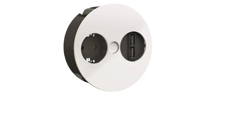 TWIST-pistorasia 1 x suko ja 1 x tupla-USB-latausmoduuli 3,1 A. Upotettava pistorasia keittiöön, toimistoon ja kalusteisiin. Tyylikäs ja kompakti muotoilu, joka on voittanut useita suunnittelupalkintoja. Korkealaatuinen.