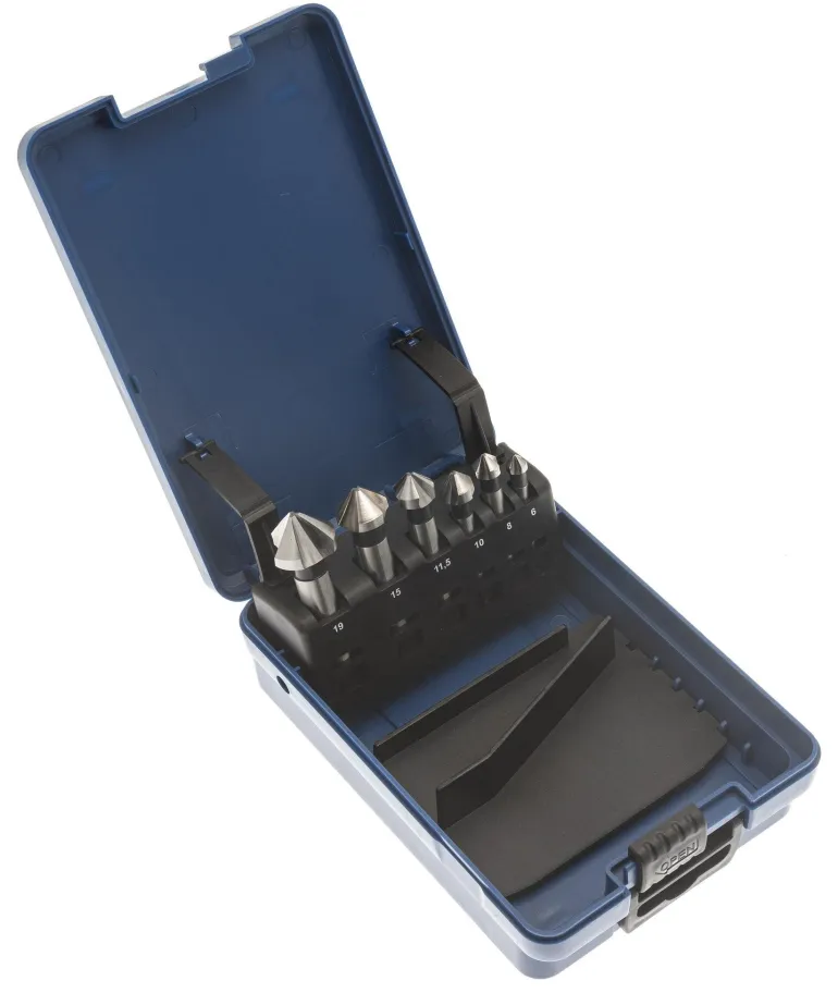 Harlingen 509257 on 6-osainen sarja senkkaus-/upotusteriä. Sarja sisältää 6 kpl HSS-teräksestä valmistettuja 3-teräisiä senkkaus-/upotusteriä. Toimitetaan käytännöllisessä muovilaatikossa.