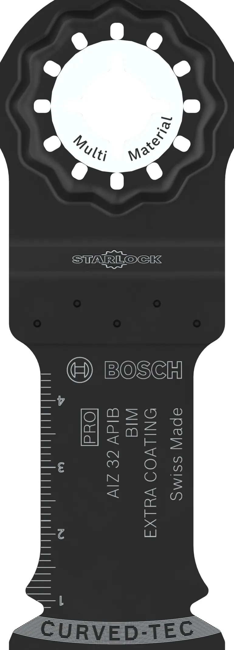 Bosch PRO AIZ 32 APIB on upotussahanterä, jonka kovat terät on liitetty joustavaan runkoon hitsaamalla bimetallia lujuuden ja kestävyyden takaamiseksi. Hampaat on pinnoitettu kestävyyden lisäämiseksi. Sopii materiaaleille naulainen puu, metallikerroslevyt, muovipinnoitetut levyt ja muovit. Curved-Tec-mallinen terä tekee siitä ihanteellisen repeytymättömään upotussahaukseen. Starlock-kiinnitys takaa optimaalisen voimansiirron ja helpon terän vaihdon kolmessa sekunnissa.