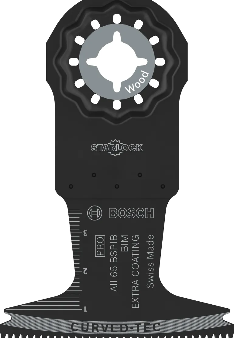Bosch PRO AII 65 BSPIB on upotussahanterä, jonka kovat terät on liitetty joustavaan runkoon hitsaamalla bimetallia lujuuden ja kestävyyden takaamiseksi. Siinä on päällystetyt japanilaisesti hammastetut hampaat, jotka tekevät siitä erittäin kestävän ja mahdollistavat aggressiiviset ja nopeat leikkuut kovaan puuhun vähentäen palamista. Soveltuu materiaaleille kova puu ja muovipinnoitetut levyt. Terän Curved-Tec -muodon ansiosta upotussahausjälki on repeytymätöntä.