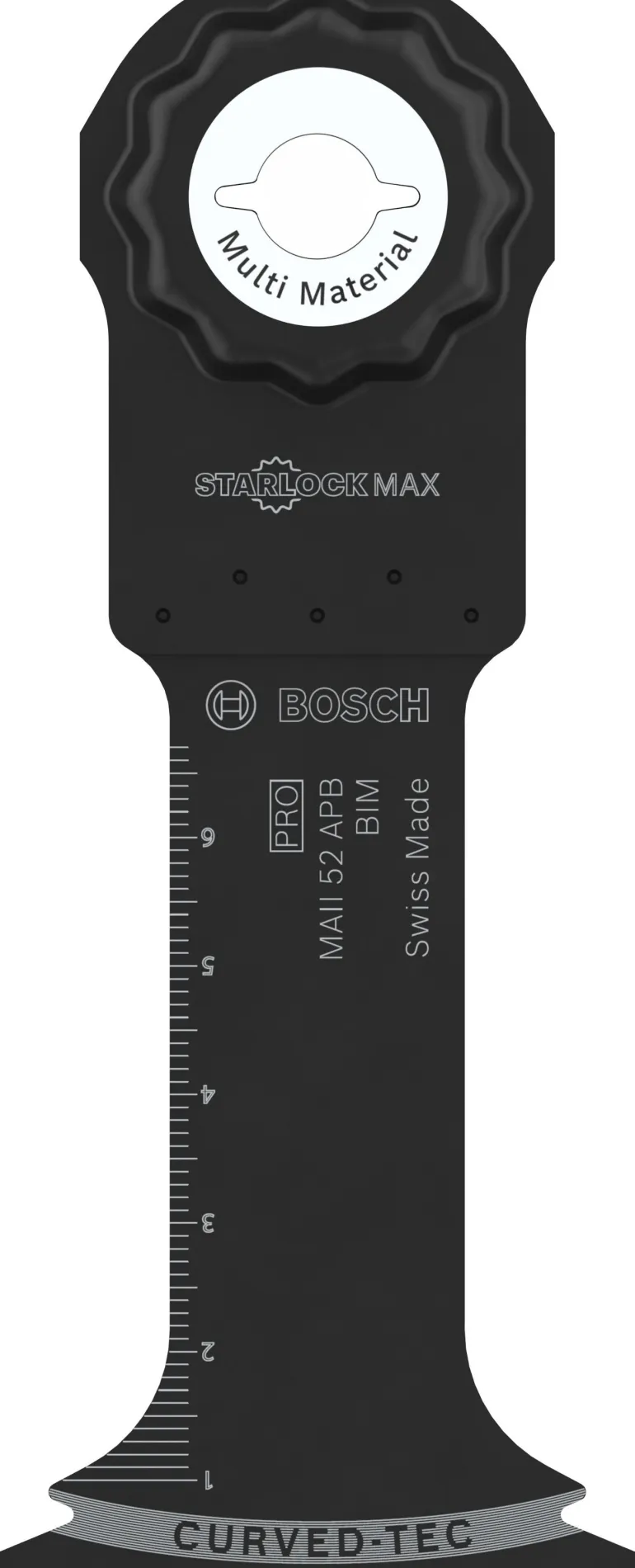 Bosch MAII 52 APB on bimetallista valmistettu upotussahanterä, joka takaa lujuuden ja kestävyyden. Sen Curved-Tec-muotoilu on ihanteellinen repeytymättömiin uppoleikkauksiin, ja sen suuremman pituuden ansiosta voit leikata nopeammin ja varmistaa maksimaalisen tehokkuuden työmaalla. Sopii materiaaleille naulainen puu, metallikerroslevyt, muovipinnoitetut levyt ja muovit. StarlockMax-kiinnike maksimaaliseen voimansiirtoon ja sujuvaan teränvaihtoon 3 sekunnissa. Ihanteellinen ammattilaisille, jotka arvostavat monitoimityökalun kykyä tehdä upotusleikkauksia, tasosahauksia ja tarkkoja leikkauksia, ja jotka tarvitsevat monipuolisen terän, joka suoriutuu erinomaisesti erilaisista tehtävistä. MAII 52 APB -terän avulla pystyt käsittelemään monia materiaaleja, ja se mahdollistaa myös suuren leikkuunopeuden maksimaalisen tehokkuuden saavuttamiseksi.