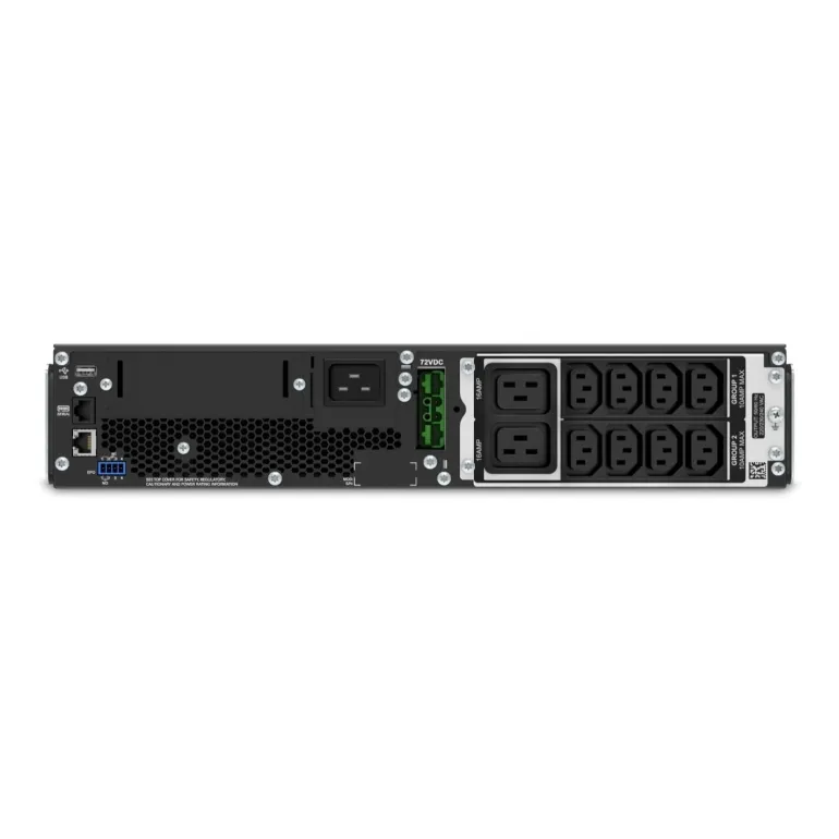 8 x C13 + 2 x C19. Optiona hallintakortit. Smart-UPS -laitteet ovat EcoStruxure -yhteensopivia, sillä ne on varustettu SmartConnect ethernet -liitännällä, joka tekee UPSin etähallinnan -ja monitoroinnin entistä helpommaksi. Laiteessa on myös SmartSlot -verkkokorttipaikka, johon liitetyllä verkkortilla mahdollistetaan esimerkiksi UPSiin liitetyn laitteiston hallittu alasajo. Takuu laitteella 3 vuotta ja akustolla 2 vuotta.