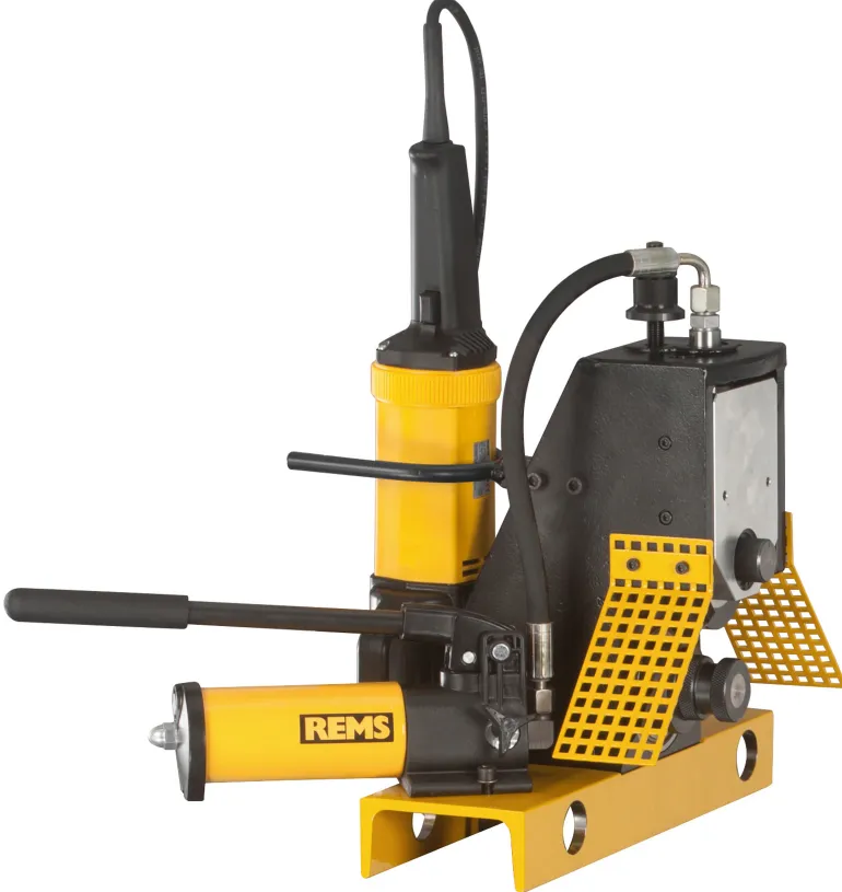 REMS Collum RG on urituslaite, joka sisältää 1200W:n käyttökoneen. Soveltuu putkien uritukseen DN 25-300. Käsihydraulipumpulla, mukana urarullat (painerulla, vastapainerulla) teräsputkille 2-6″. Asennetaan työpöytään tai jalustaan, eivät sisälly.