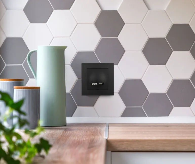 USB-latauspistorasia USB A- ja C-portilla, joka mahdollistaa kahden laitteen samanaikaisen latauksen. Power Delivery-tekniikalla USB-C portista saa jopa 45W lataustehon, joka älypuhelimen lisäksi mahdollistaa esim. kannettavan tietokoneen tehokkaan latauksen. Power Delivery-tekniikka mahdollistaa annettavan virran määrittelyn ladattavan laitteen mukaan, mikä mahdollistaa aina optimaalisen ja turvallisen latauksen. Power Delivery lataa aina liitetyn laitteen sallimalla suurimmalla teholla.