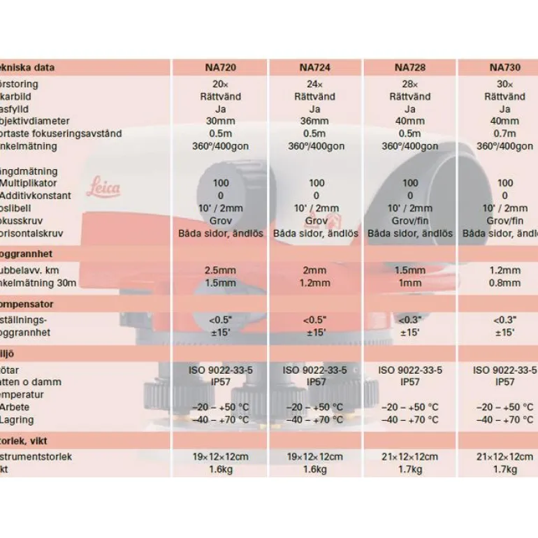Leica NA724 on NA-sarjan vaaituskoje, jonka kiikarin 24-kertainen suurennus lisää tarkkuutta. Laadukas kompensaattori takaa hyvät mittausarvot. Luotettava ja vakaa, vaativille rakennustyömaille.