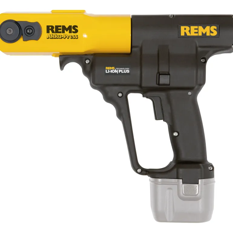 REMS Akku-Press on 14,4 V:n väännin, yhdellä kädellä käytettävä, manuaalinen palautus ja kapasiteetti Ø 10-54 mm. Kompakti, kätevä ja kevyt kone, joka yhdessä akun kanssa painaa vain 4,3 kg ja jonka paino jakautuu optimaalisesti. Voidaan siten käyttää missä tahansa, käsin, pään korkeuden yläpuolella, myös ahtaissa tiloissa. Ergonomisesti muotoiltu kotelo, jossa on upotettu kahva.