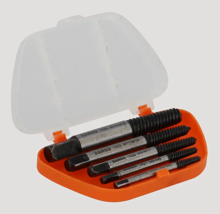 Vaarnaruuvin ulosvetäjät, 5 osaa. Valmistettu kestävästä erikoisteräksestä. Hiekkapuhallettu. Vaarnaruuvit M3-M18.