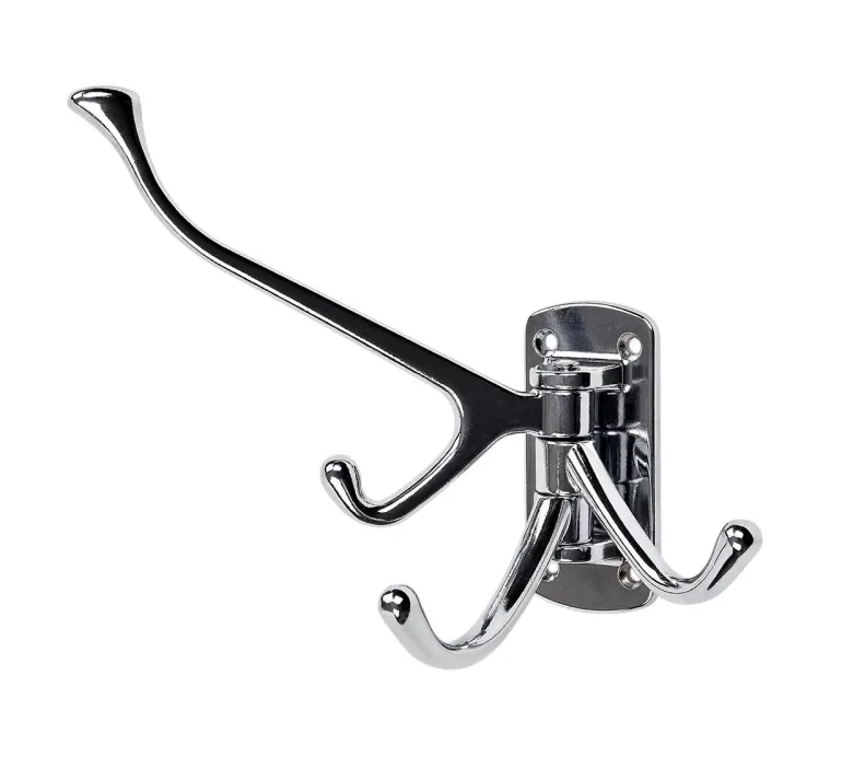 Habo Quattro. Käännettävä 3-osainen vaatekoukku kiillotetusta kromista.