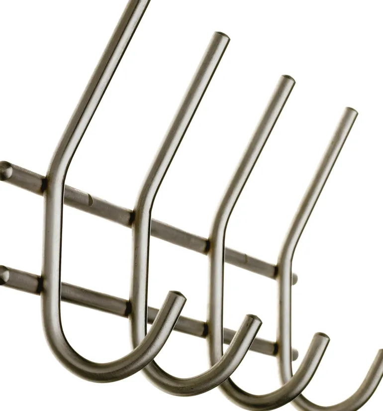 Ruostumattomasta teräksestä valmistettu vaateripustin, sisältää ruuvit.