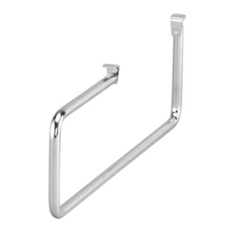 Kromattu ripustin, joka soveltuu hyvin vaatteiden esillepanoon tai paikkoihin, joissa syvyyssuuntainen tila on rajoitettu, sillä henkarit ripustetaan tankoon peräkkäin. Napsautetaan paikalleen lankahyllyn 40 tai lankahyllykorin 40 pohjaan.