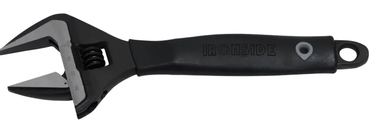 Kromivanadiiniterästä. Fosfatoitu. Mittaskaala. Ekstrasuuri tartuntaleveys. Kumikädensija.
