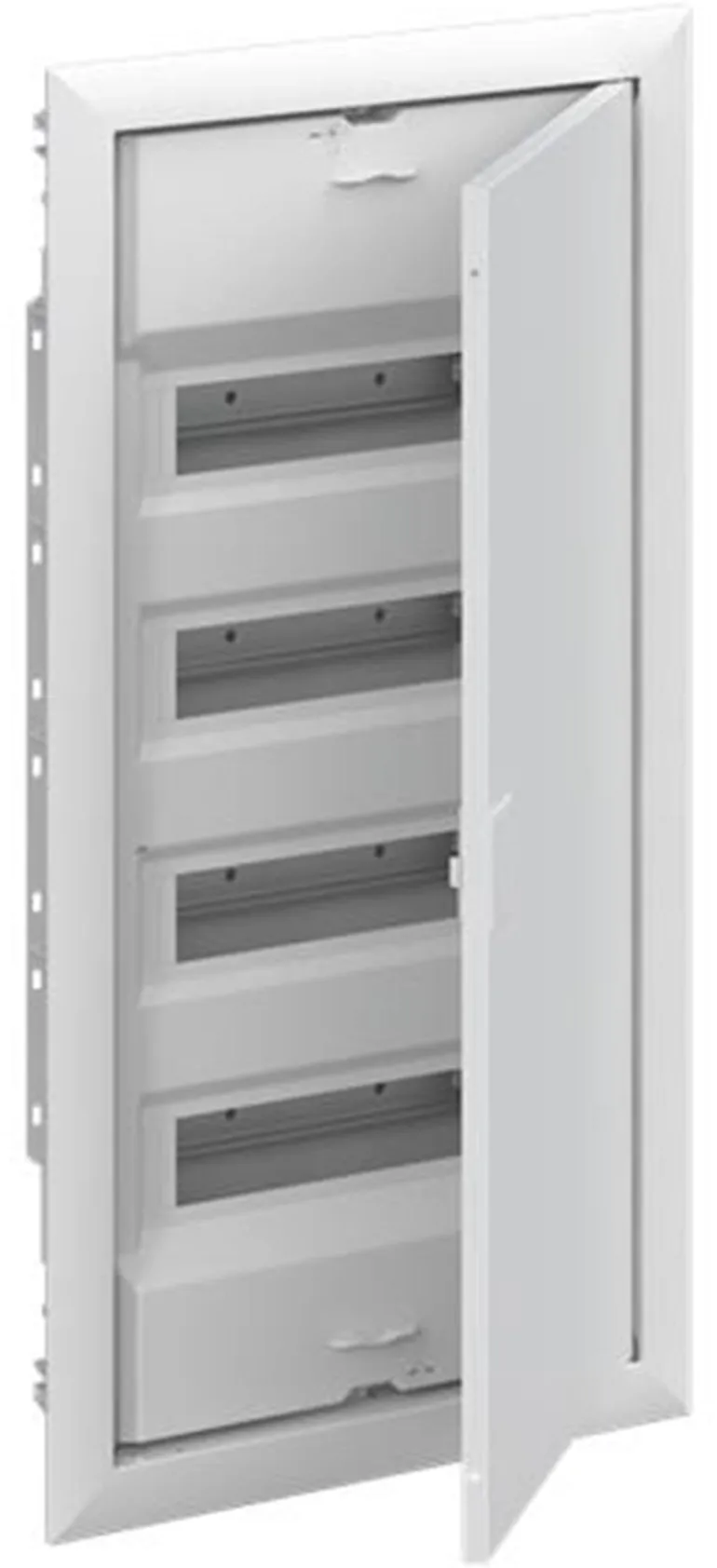 Vakiokeskuskotelo uppoasennukseen, sarja UK600, ovikehyksellä ja ovella, kotelointiluokka II (kaksoiseristetty) ja IP30. Sovellettavat standardit: EN 60670-24, IK-koodi 07. Nimelliskäyttöjännite 400 V AC 50/60 Hz, nimellisvirta 63 A, hehkulangan resistanssi 850 °C, jauhemaalattu, RAL 9016, kestomuovinen kotelo, jossa kehys ja ilmastoitu ovi, teräslevyovi, TIP-suljin, oven avauskulma 120°, oven sarana oikealla tai vasemmalla, N/PE ja integroitu kaapelikiinnike.