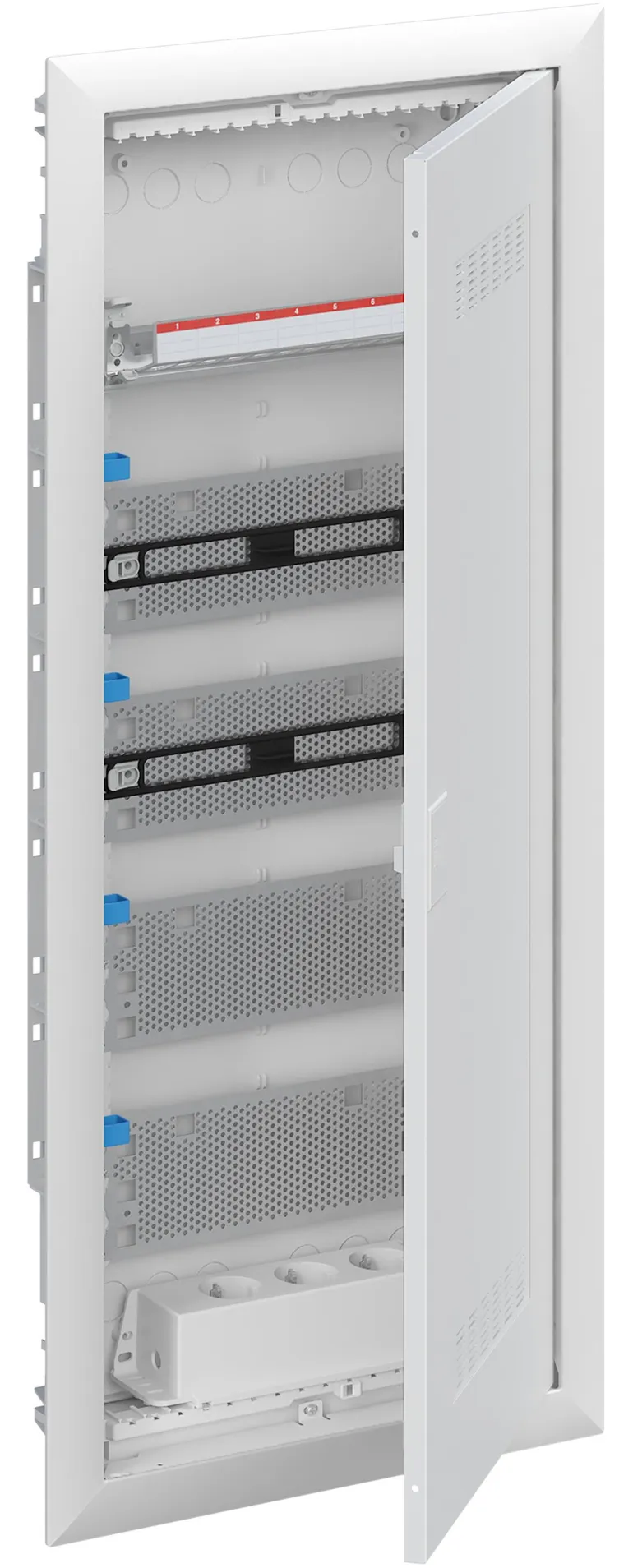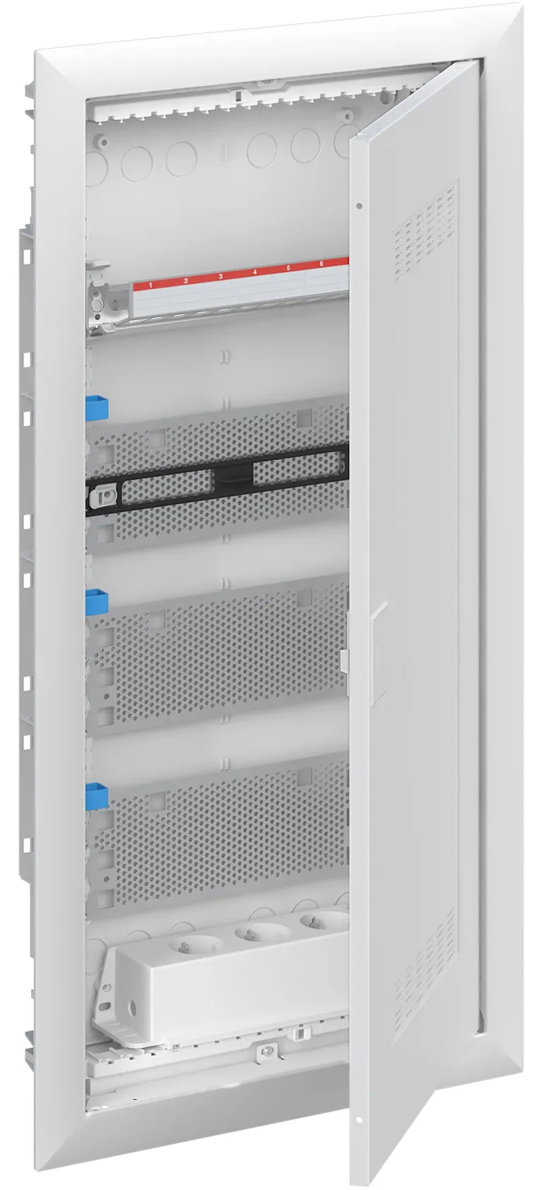 Vakiokeskuskotelo uppoasennukseen, sarjaan ABB UK600, ovikehyksellä ja ovella, kotelointiluokka II (kaksoiseristetty) ja IP30.
