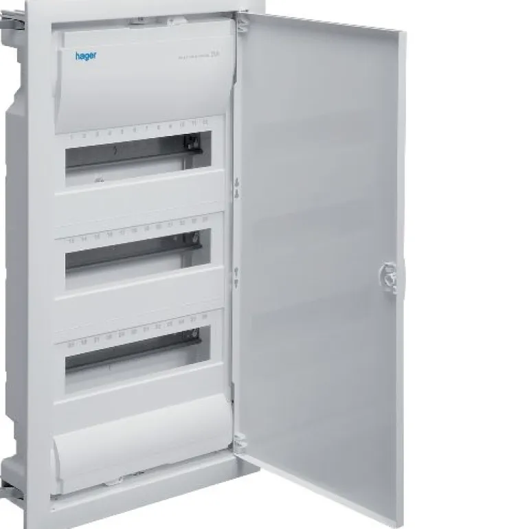 Upotettava vakiokotelo rei ’itetyille seinille, asennussyvyys enintään 90 mm. Irrotettavat kaapelin kiinnityslaipat, saapuvien kaapeleiden kannattimet. DIN-kisko teräslevyä, sinetöitävä etukappale. Runko on säädettävissä sivu- ja syvyyssuuntaan, runko ja ovi peltiä, upotettu oven kahva. Sisäänrakennettu minivesivaaka kaikissa sisään taittuvissa laatikoissa. Kotelon sivulla paikka nolla-/maadoitusliittimelle. Kaapelien kiinnityslaipassa integroitu pidike nolla- ja maadoituslohkolle. Uudet kompaktit liitäntälohkot, kun käytössä on useita vikavirtakytkimiä. Ovi voidaan ripustaa vasemmalle tai oikealle, ja siihen voidaan asentaa myös lukko. Muita lisävarusteita ovat lukko, sisäosat, väliseinät, design-ovet ja asennuslevy.