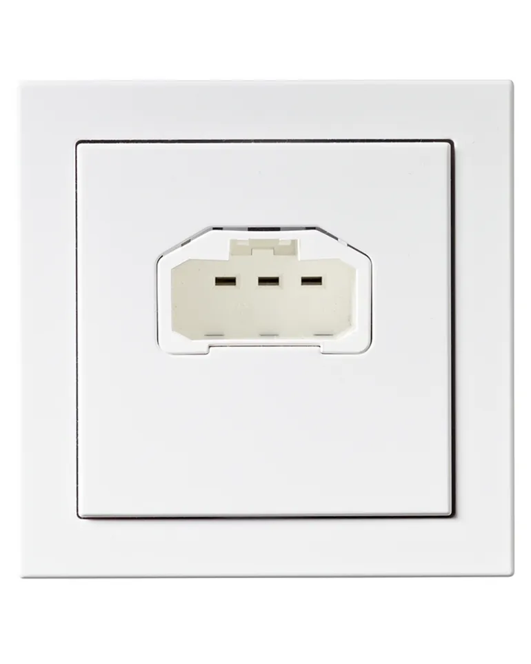 DCL-valaisinpistorasia, seinä, asennus laitelaatikkoon, pikaliitäntä, max 2,5 mm²:n kaapeli. Impressivo