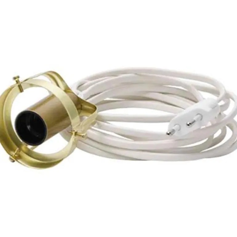 4 m valaisinkaluste kultaisella lampunpidikkeellä, messinkinen kiinnike ja valkoinen kaapeli eurooppalaisella pistokkeella.
