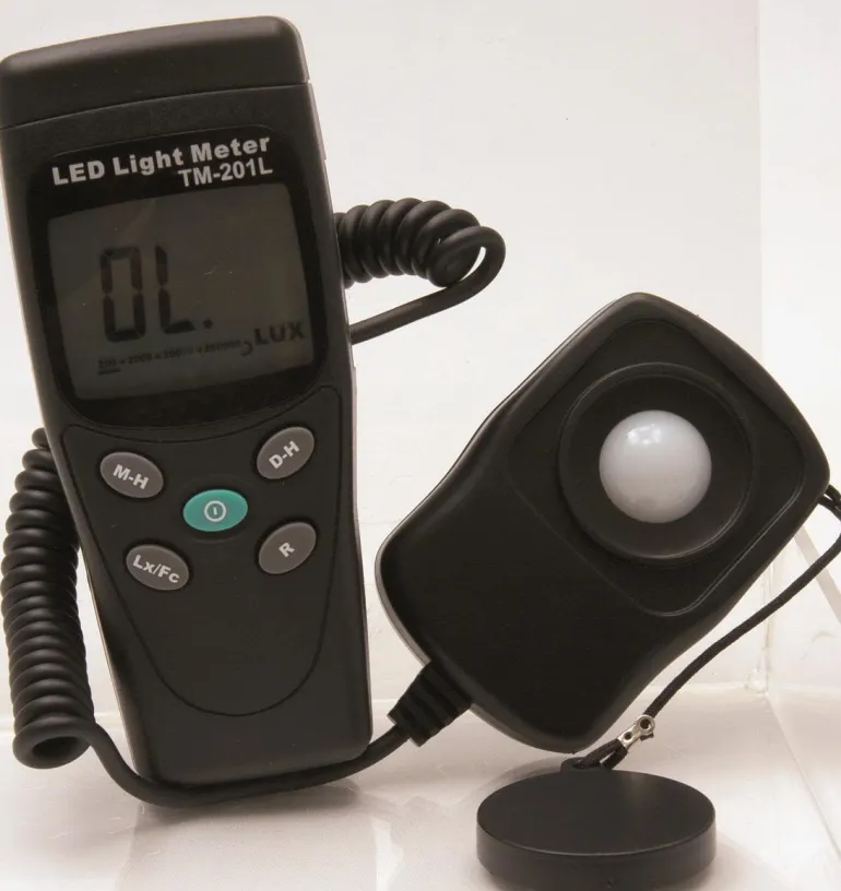 Digitaalinen valaistusvoimakkuusmittari, jossa on erityyppisille valoille mukautettu valoanturi. Vakaa, valoherkkä piidiodi suodattimineen takaa korkean tarkkuuden ja pitkän käyttöiän. Mittaa herkkyysominaisuuden CIE-valokäyrän mukaan (silmän herkkyyskäyrä).