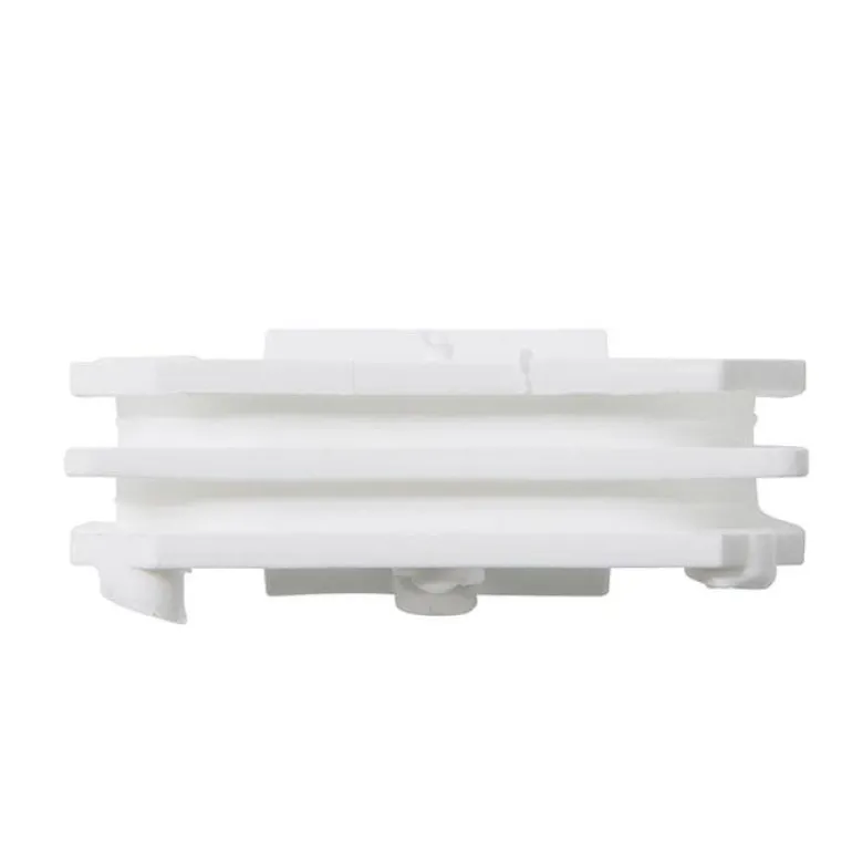 Välikappale koteloitujen, pinta-asennettujen pistorasioiden ja kytkimien kokoamiseen. Siinä on kaksi reikää ja se on tehty valkoisesta termoplastista.
