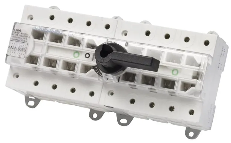 Kytkin 1-0-2 DIN-urille näkyvällä murtopisteellä. Liitäntäalue: Cu 50 mm²