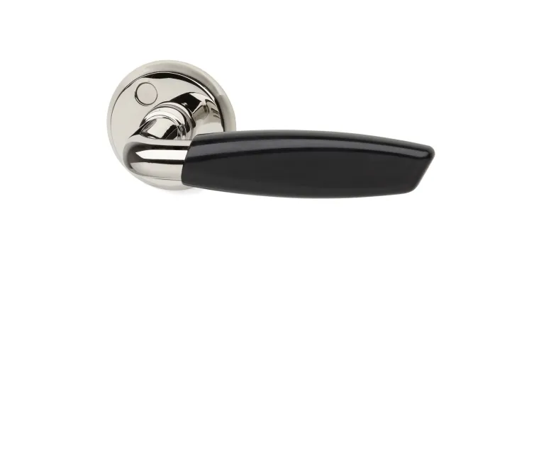 Messinkinen ovenpainike, kahva muovia. Klassisen ajaton funktionalistinen painike. Ei sisällä avainkilpeä. 38–42 mm vahvuisiin oviin. Ulkonema 55 mm.