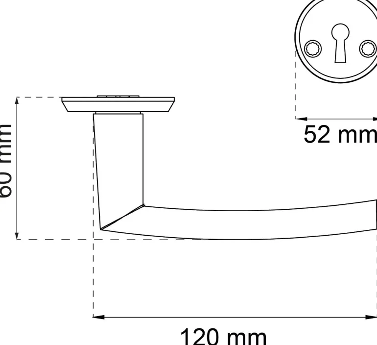 Väliovenpainike avainkilvellä ruostumatonta terästä. Tyylikäs painike, joka on varma valinta. Yksinkertaisen klassinen muotoilu. 38-42 mm vahvuisiin oviin. Ulkonema 60 mm.