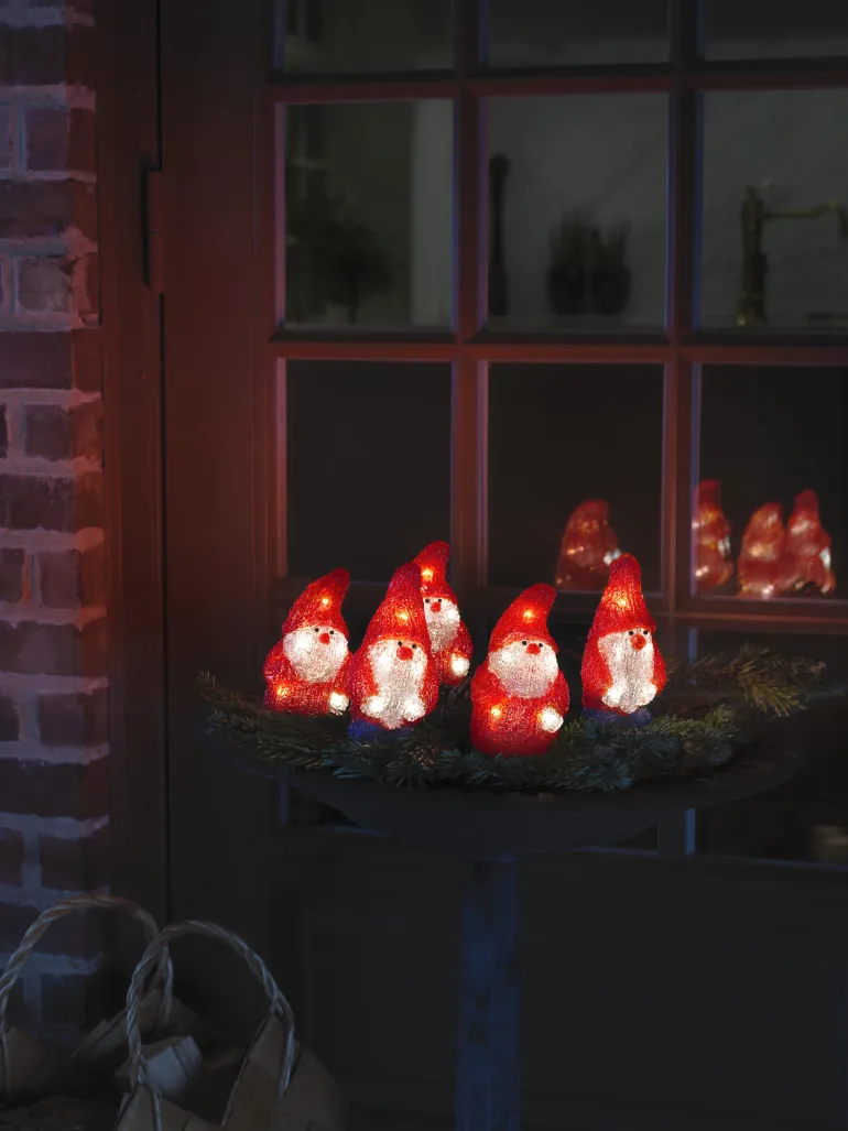 Konstsmide 6240-103 on valokoriste akryylia (5 kpl tonttuja), joissa on 40 lämpimän valkoista LEDiä. 24 V/IP44.