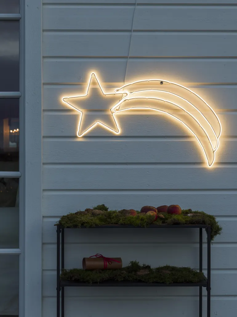 Konstsmide 3079-102 on valokoriste metallia (komeetta). Valoletku, jossa 384 lämpimän valkoista LEDiä. 31V/IP44.
