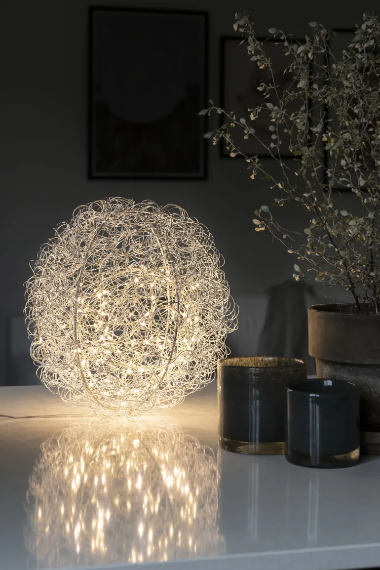 Konstsmide 3515-303 on valokoriste (lankapallo), 30 cm. 160 lämpimän valkoista LEDiä. 4,5 V/IP20.
