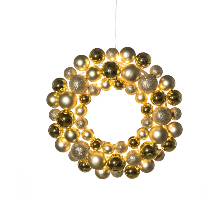 Konstsmide 3783-803 on valokranssi 40 cm (messinki), jossa on 50 amber-väristä LEDiä. Ajastin 9 h, 4 x AA-paristoa.