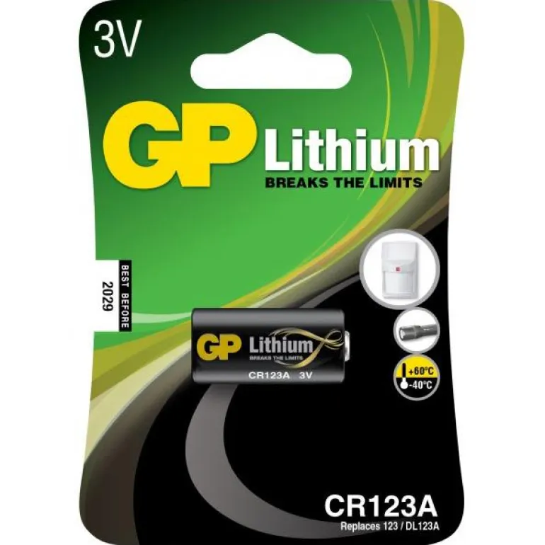 GP PowerBank CR 123A-U1/123A on korkealaatuinen 3 V:n valokuvausparisto (litium), jossa on sisäänrakennettu turvamekanismi. Paristo selviää äärimmäisissä lämpötiloissa -40 …+60 ° C:seen. Käytetään yleensä digitaalisissa ja analogisissa kameroissa, salamoissa, valvontakameroissa, taskulampuissa ja kaukosäätimissä. Litiumparistoilla on myös erittäin korkea energiatiheys, mikä antaa voimakkaalle akulle pitkän käyttöiän. Ei ladattavissa.