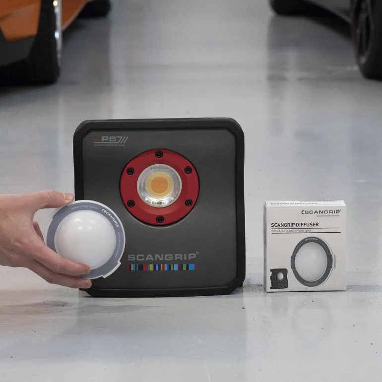 Scangripin DIFFUSER-valonhajottimella saat laaja-alaisemman ja pehmeämmän valaistuksen. Hajotin on helppo kiinnittää valaisimeen integroidun magneetin avulla.