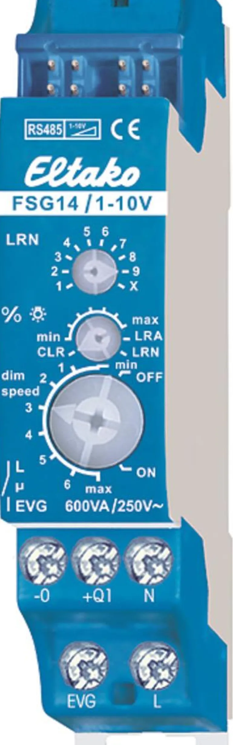 Yleisvalonsäädin Eltako RS485-BUSiin liittämistä varten. 1 ei potentiaalivapaa NO-kytkin 600 VA ja 1–10V ohjauslähtö 40 mA.
