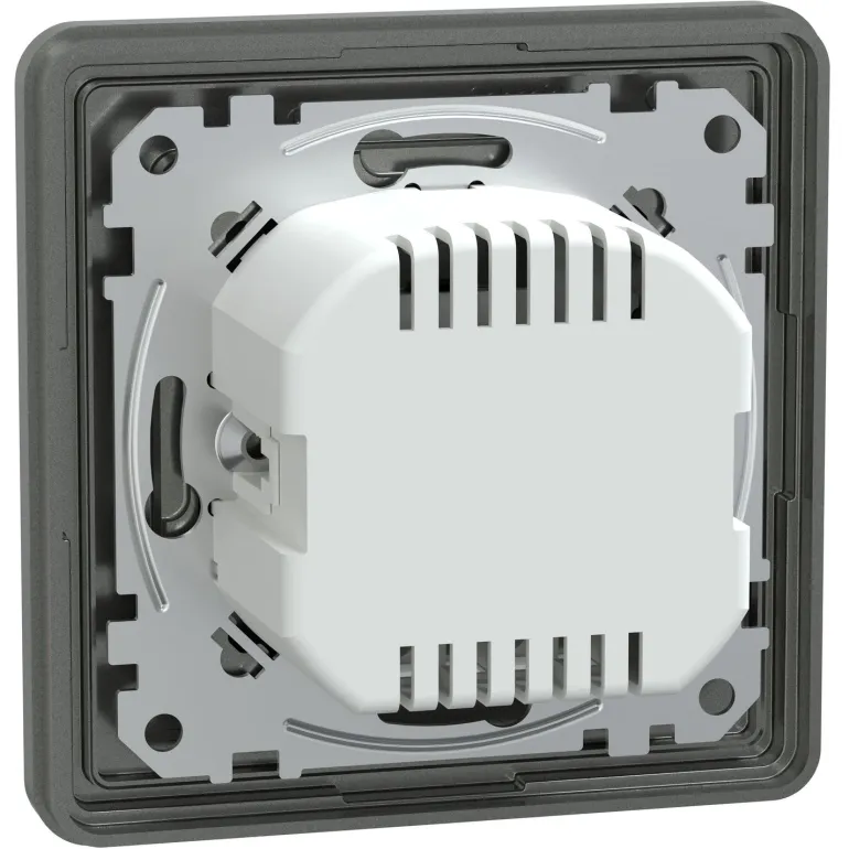 Schneider Electric Exxact valonsäädin/LED-himmennin 4-400 W, antrasiitti. Universaali kiertonuppivalonsäädin. Laite sisältää elektronisen oikosulkusuojan ja automaattisen ylikuormitussuojan turvallisuuden varmistamiseksi. Nimellisvirta 10 A, ja tehoalueet 4 W…200 VA, 4 W…400 VA, 4…40 W, 4…400 W. Kiinnitys ruuveilla. Mitat: leveys 71 mm, korkeus 71 mm, syvyys 51 mm, upotussyvyys 29 mm, projisoitu syvyys 22 mm. Ruuviliittimet. Suojaluokka IP20.